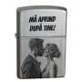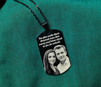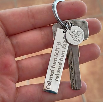 Cana cu carabiniera, realizata din inox, culoare negru mat, personalizata prin gravura laser cu emoji zambaret cu ochelari de soare, mesajul Cu drag si in partea de jos un mesaj ascuns special pentru toti "cu drag"-ii...