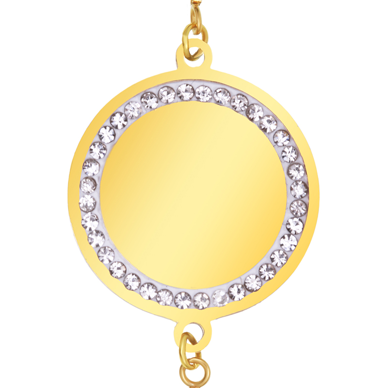 Bratara realizata din inox cu pandantiv auriu in forma de banut cu pietre personalizat prin gravura laser cu desen reprezentativ pentru specializarea medicului caruia urmeaza sa ii daruiesti cadoul si numele sau mesajul pe care vrei sa i-l transmiti.