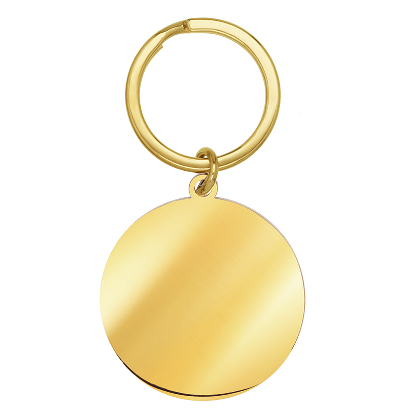 Breloc auriu in forma de banut rotund, realizat din inox, personalizat prin gravura laser cu un mesaj special pentru tine sau pentru persoana careia urmeaza sa ii daruiesti cadoul.
