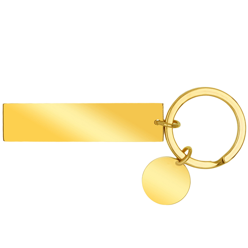 Breloc auriu in forma de placuta dreptunghiulara cu banut, realizat din inox, personalizat prin gravura laser exact asa cum vrei! Personalizeaza produsul cu poza, simboluri sau mesaj.