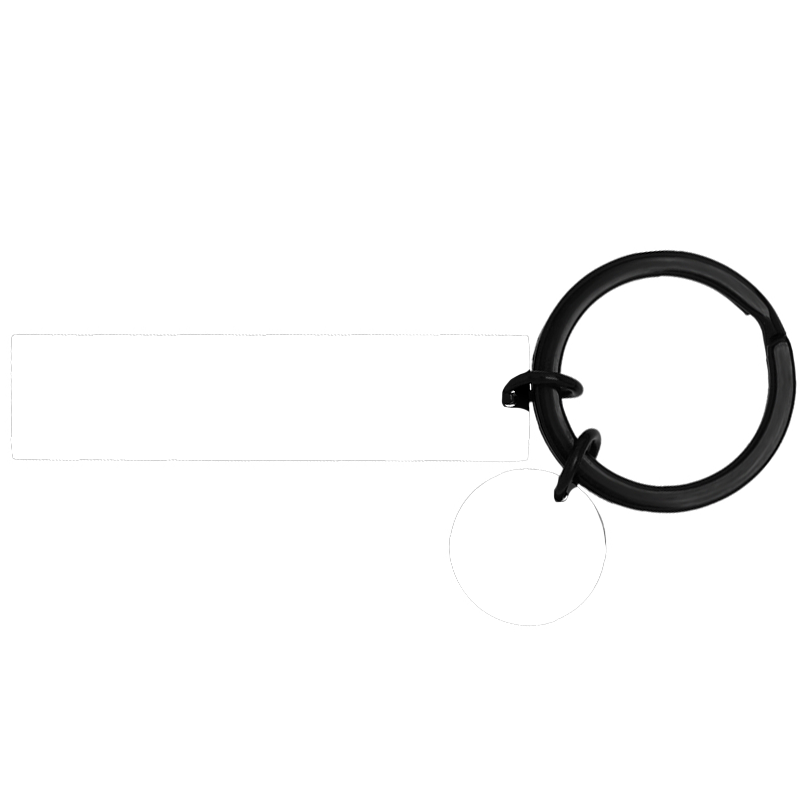 Breloc negru in forma de placuta dreptunghiulara cu banut, realizat din inox, personalizat prin gravura laser exact asa cum vrei! Personalizeaza produsul cu poza, simboluri sau mesaj.
