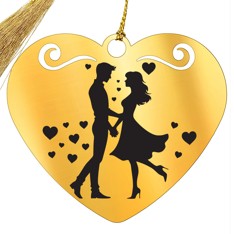 Decoratiune Craciun in forma de inima, realizata din inox auriu, personalizata prin gravura laser cu mesajul tau, anul si siluetele a doi indragostiti. Stralucitoare si eleganta, decoratiunea va impresiona atat prin poveste cat si prin aspect. Bradul tau de Craciun va arata spectaculos anul asta. Un cadou ce isi poate adapta utilitatea si dupa sezonul de Sarbatori, transformandu-se intr-un elegant semn de carte sau accesoriu pentru agenda. Realizata din otel inoxidabil, atat gravura cat si culoarea bazei isi vor pastra in timp aspectul si culoarea. Cadoul este ambalat direct pentru a fi pus sub brad!