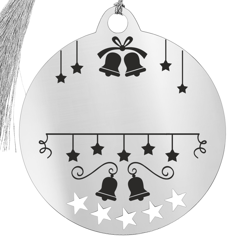 Decoratiune Craciun in forma de glob cu perforatii stelute, realizata din inox argintiu, personalizata prin gravura laser cu ornamente si cuvantul pe care vrei sa il transmiti persoanei dragi careia urmeaza sa ii daruiesti cadoul. Stralucitoare si eleganta, decoratiunea va impresiona atat prin poveste cat si prin aspect. Bradul tau de Craciun va arata spectaculos anul asta. Un cadou ce isi poate adapta utilitatea si dupa sezonul de Sarbatori, transformandu-se intr-un elegant semn de carte sau accesoriu pentru agenda. Realizata din otel inoxidabil, atat gravura cat si culoarea bazei isi vor pastra in timp aspectul si culoarea. Cadoul este ambalat direct pentru a fi pus sub brad!