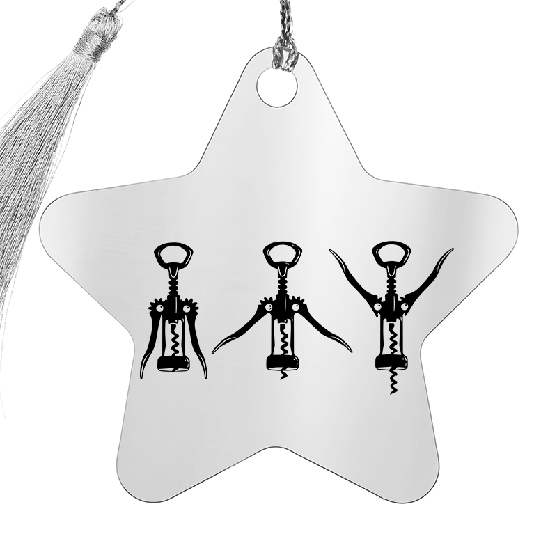 Decoratiune Craciun in forma de stea, realizata din inox argintiu, personalizata prin gravura laser cu tirbuson cu brate in diverse pozitii si mesajul Holiday workout sau alt mesaj amuzant pe care vrei sa i-l transmiti persoanei careia urmeaza sa ii daruiesti cadoul. Stralucitoare si eleganta, decoratiunea va impresiona atat prin poveste cat si prin aspect. Bradul tau de Craciun va arata spectaculos anul asta. Un cadou ce isi poate adapta utilitatea si dupa sezonul de Sarbatori, transformandu-se intr-un elegant semn de carte sau accesoriu pentru agenda. Realizata din otel inoxidabil, atat gravura cat si culoarea bazei isi vor pastra in timp aspectul si culoarea. Cadoul este ambalat direct pentru a fi pus sub brad!