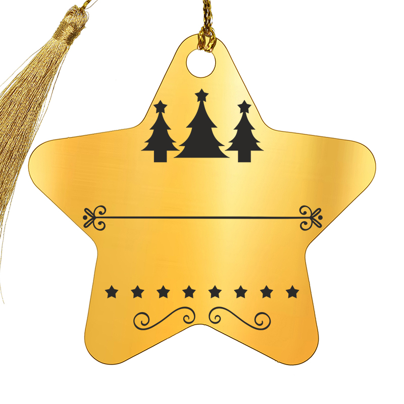Decoratiune Craciun in forma de stea, realizata din inox auriu, personalizata prin gravura laser cu ornamente specifice sezonului de iarna si mesajul Sarbatori fericite sau oricare alt mesaj pe care vrei sa il transmiti persoanei careia ii veti darui cadoul. Bradul tau de Craciun va arata spectaculos anul asta.