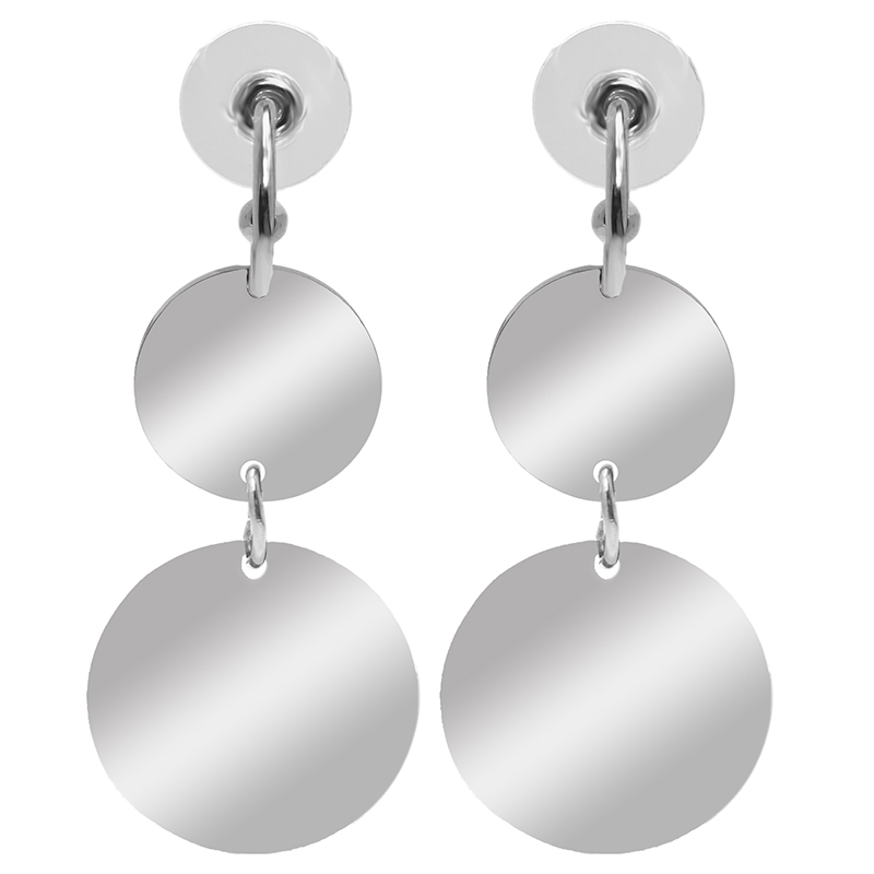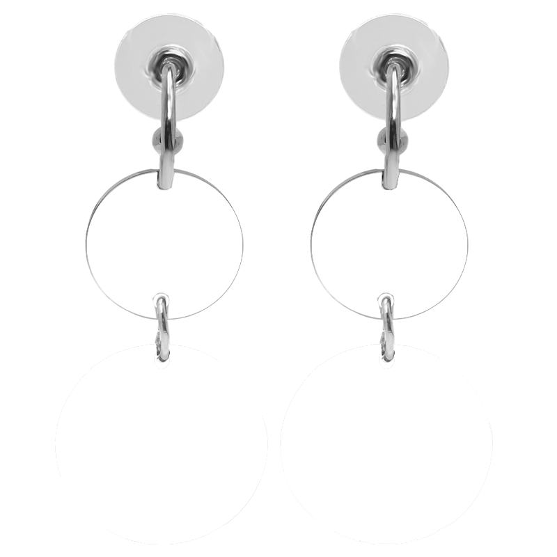 Cercei argintii cu doi banuti, realizati din inox si personalizati prin gravura laser exact asa cum vrei tu. Scoate cutia cu amintiri si gandeste-te cum vrei sa iti personalizezi cerceii, cu poza, mesaj, simboluri, tu ce alegi?