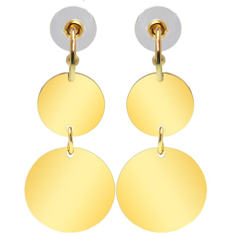 Cercei aurii cu doi banuti, realizati din inox si personalizati prin gravura laser exact asa cum vrei tu. Scoate cutia cu amintiri si gandeste-te cum vrei sa iti personalizezi cerceii, cu poza, mesaj, simboluri, tu ce alegi?
