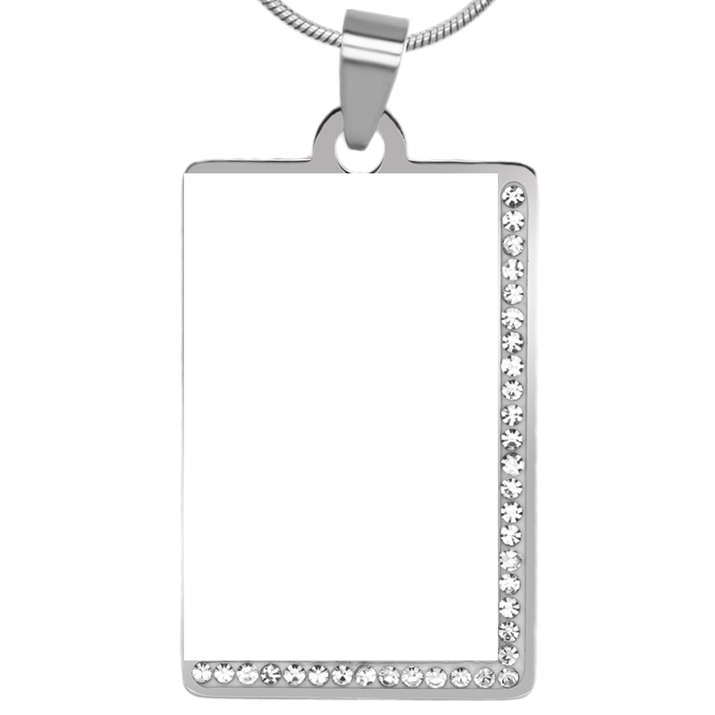 Colier cu pandantiv cu forma dreptunghiulara si pietricele, realizat din inox de culoare argintie si colier tub, personalizat prin gravare laser cum vrei tu! Un cadou care impresioneaza prin emotie si cucereste prin poveste si amintiri. Un colier cu pandantiv usor supradimensionat, cu design elegant si accesorizat cu pietricele multifatetate transparente cu o stralucire deosebita. Colierul este realizat din otel inoxidabil de cea mai buna calitate asa ca poti sta linistit, nici gravura nu isi va pierde din intensitate si nici colierul nu isi va schimba culoarea in timp. Vei primi cadoul ambalat elegant in pouch si punga cadou astfel incat il poti darui imediat ce ajunge la tine.