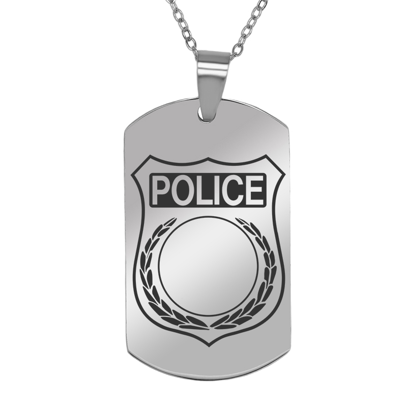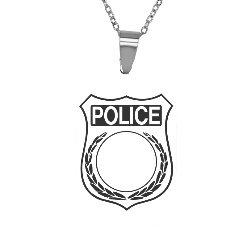 Colier army din inox de culoare argintie, personalizat prin gravare laser cu o insigna de politie si initiala numelui prietenului caruia urmeaza sa ii daruiesti cadoul sau o litera care reprezinta ceva pentru voi. Inspirat de forma placutelor militare, colierul este un cadou potrivit domnilor adepti ai unui stil nonconformist care apreciaza accesoriile cu personalitate. Colierul este realizat din otel inoxidabil de cea mai buna calitate asa ca poti sta linistit, nici gravura nu isi va pierde din intensitate si nici colierul nu isi va schimba culoarea in timp. Vei primi cadoul ambalat elegant in pouch si punga cadou astfel incat il poti darui imediat ce ajunge la tine.
