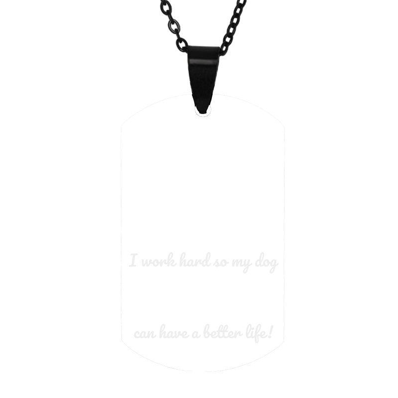 Colier din inox de culoare neagra, personalizat prin gravare laser cu mesajul I work hard so my dog can have a better life, numele animalutului tau si silueta unui catel!