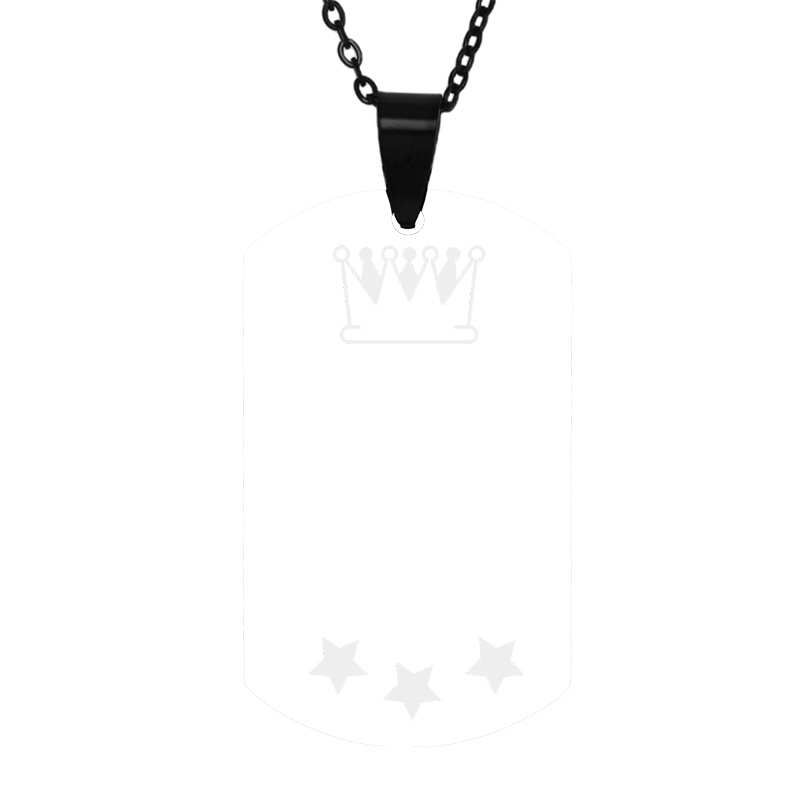 Colier army din inox de culoare neagra, personalizat prin gravare laser cu steluta, coroana si dedicatia pe care ti-o doresti pentru persoana speciala din viata ta careia vrei sa ii daruiesti cadoul. Inspirat de forma placutelor militare, colierul este un cadou potrivit domnilor adepti ai unui stil nonconformist care apreciaza accesoriile cu personalitate. Colierul este realizat din otel inoxidabil de cea mai buna calitate asa ca poti sta linistit, nici gravura nu isi va pierde din intensitate si nici colierul nu isi va schimba culoarea in timp. Vei primi cadoul ambalat elegant in pouch si punga cadou astfel incat il poti darui imediat ce ajunge la tine.