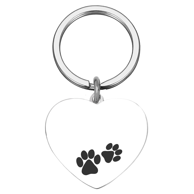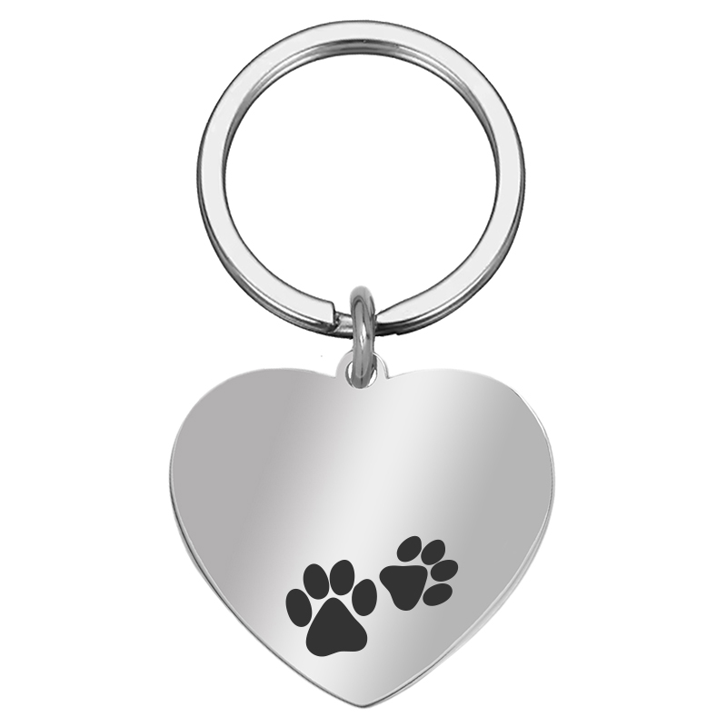 Medalion argintiu in forma de inimioara, realizat din inox, personalizat prin gravura laser cu numele animalutului tau de companie si labute, numar de telefon si mesaj pe verso.