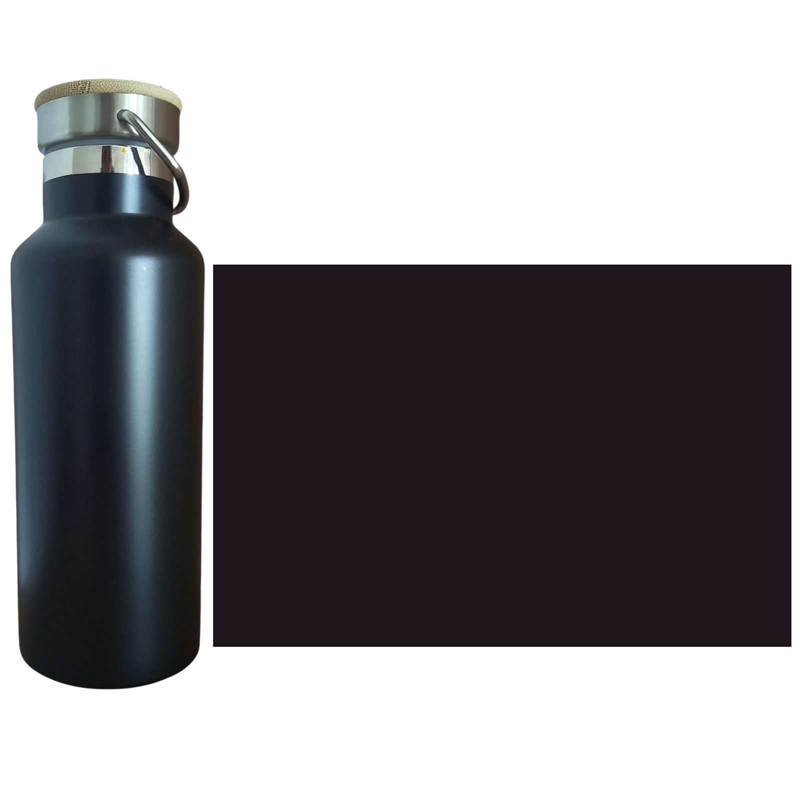 Termos negru cu capac din bambus, realizat din inox, personalizat prin gravura laser cu logo-ul companiei tale si sau sloganul echipei. Un cadou inspirat pentru colegii de birou, colaboratori, angajati si clienti. Iti recomandam sa nu tii termosul langa chei, brelocuri sau alte obiecte ascutite intrucat zgarierea ar strica din aspectul frumos al gravurii.