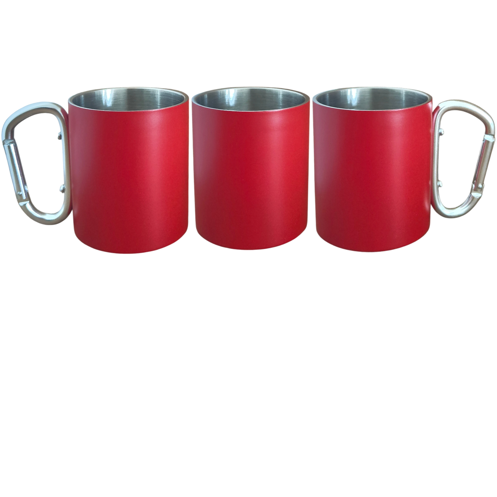 Cana rosie cu carabiniera, realizata din inox, personalizata prin gravura laser cu simboluri si numele sau mesajul persoanei careia urmeaza sa ii daruiesti cadoul.