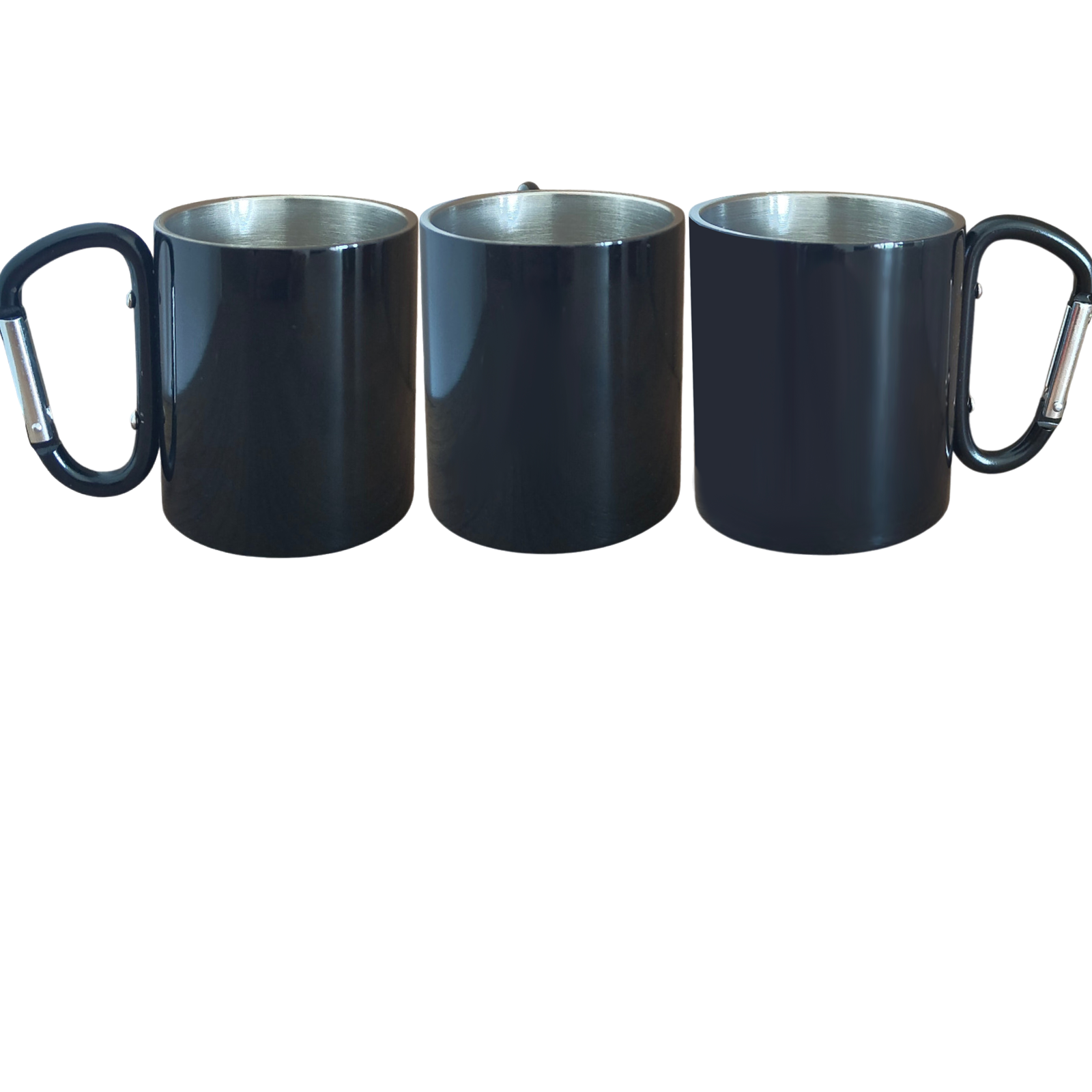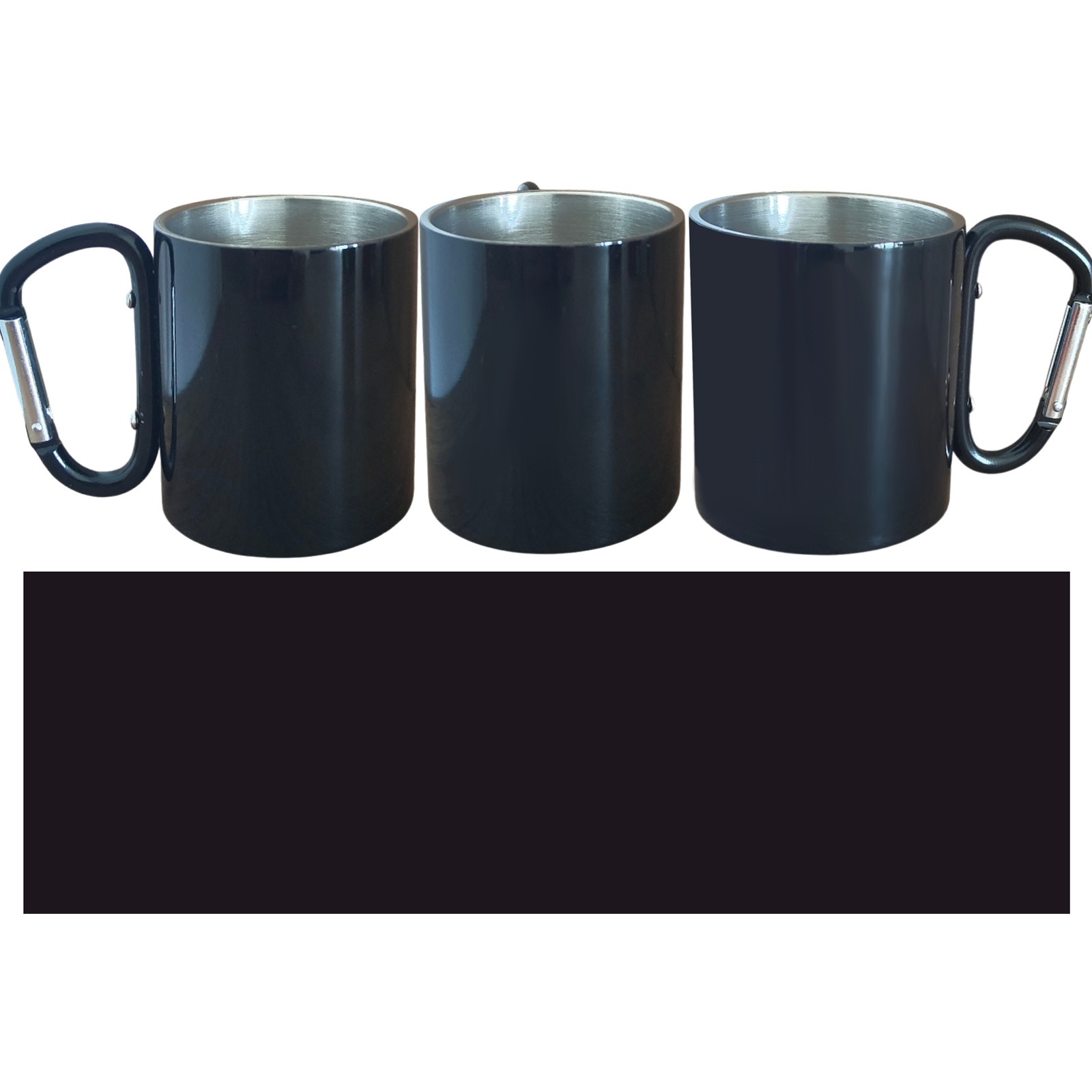 Cana neagra cu carabiniera, realizata din inox, personalizata prin gravura laser cu simboluri si numele sau mesajul persoanei careia urmeaza sa ii daruiesti cadoul.